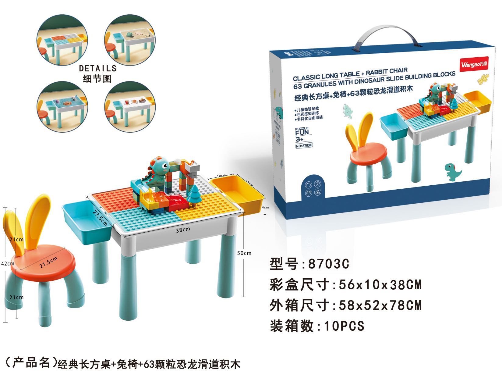 品 名:長(zhǎng)方桌+兔椅+63顆粒